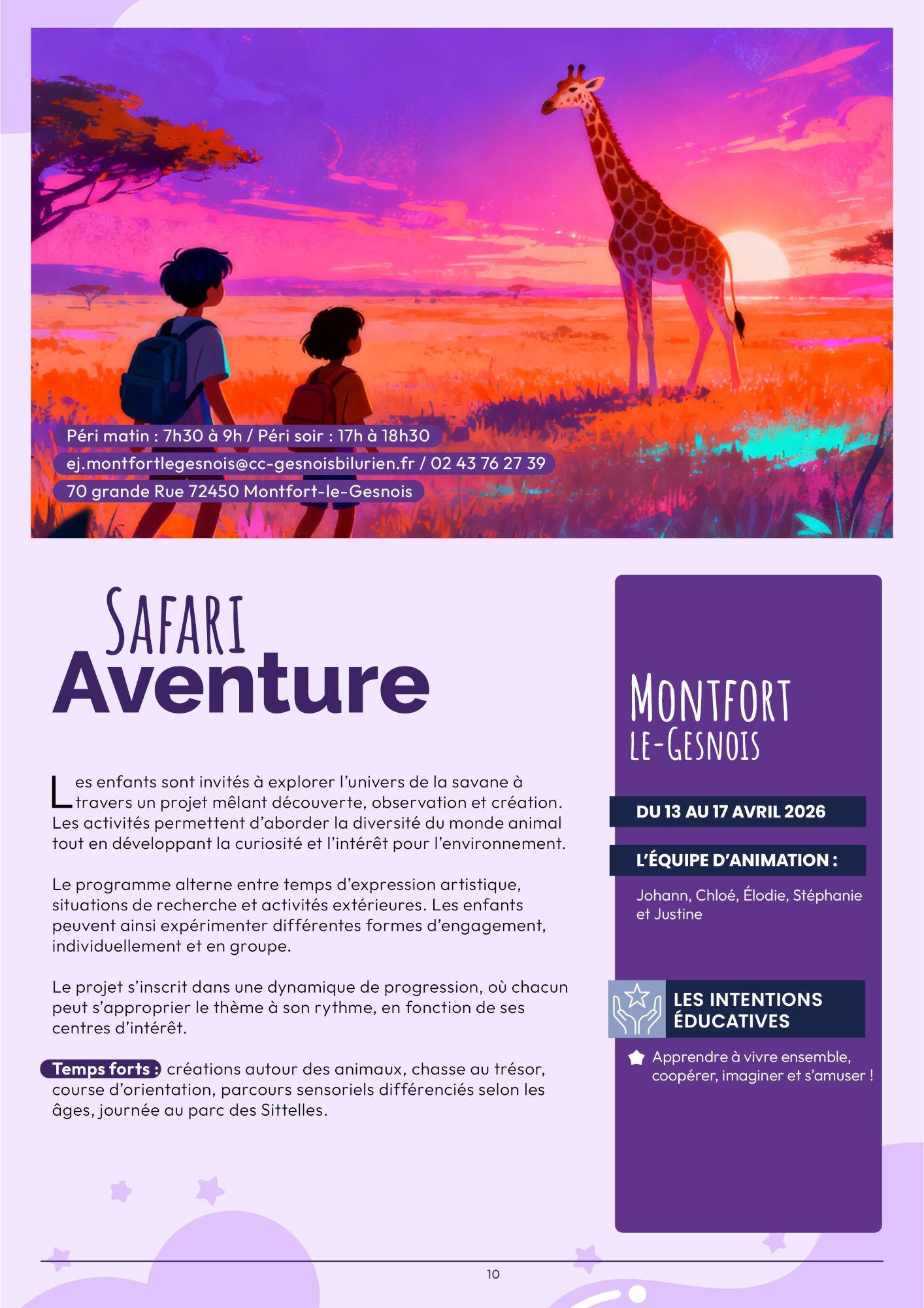 Découverte de la savane et du monde animal à travers des activités mêlant exploration, création et sensibilisation à l’environnement.