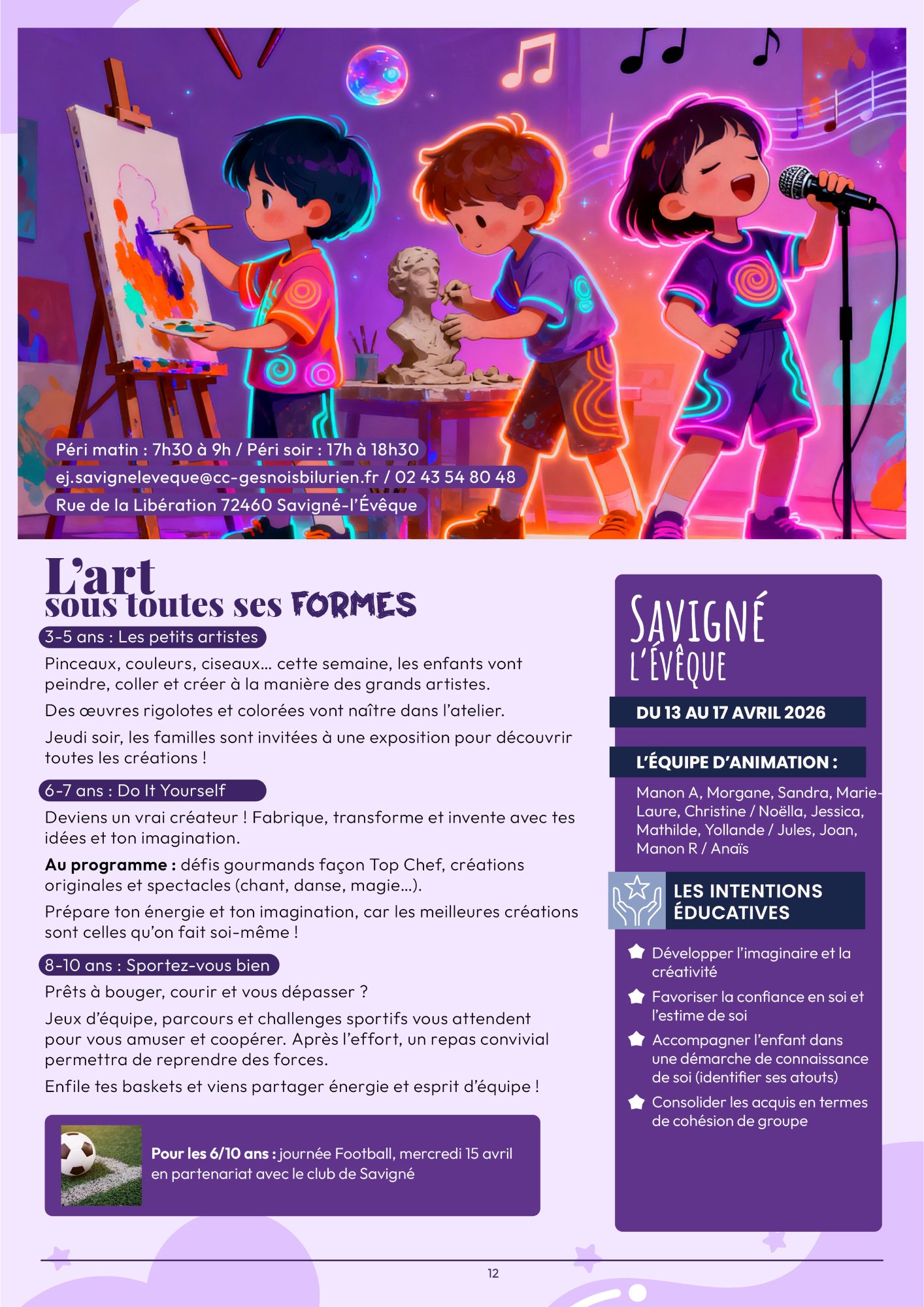Chaque accueil propose un programme d’activités varié : jeux, ateliers, sports et moments de détente, pour s’amuser, découvrir et se faire de nouveaux amis. Téléchargez la plaquette Printemps 2026.