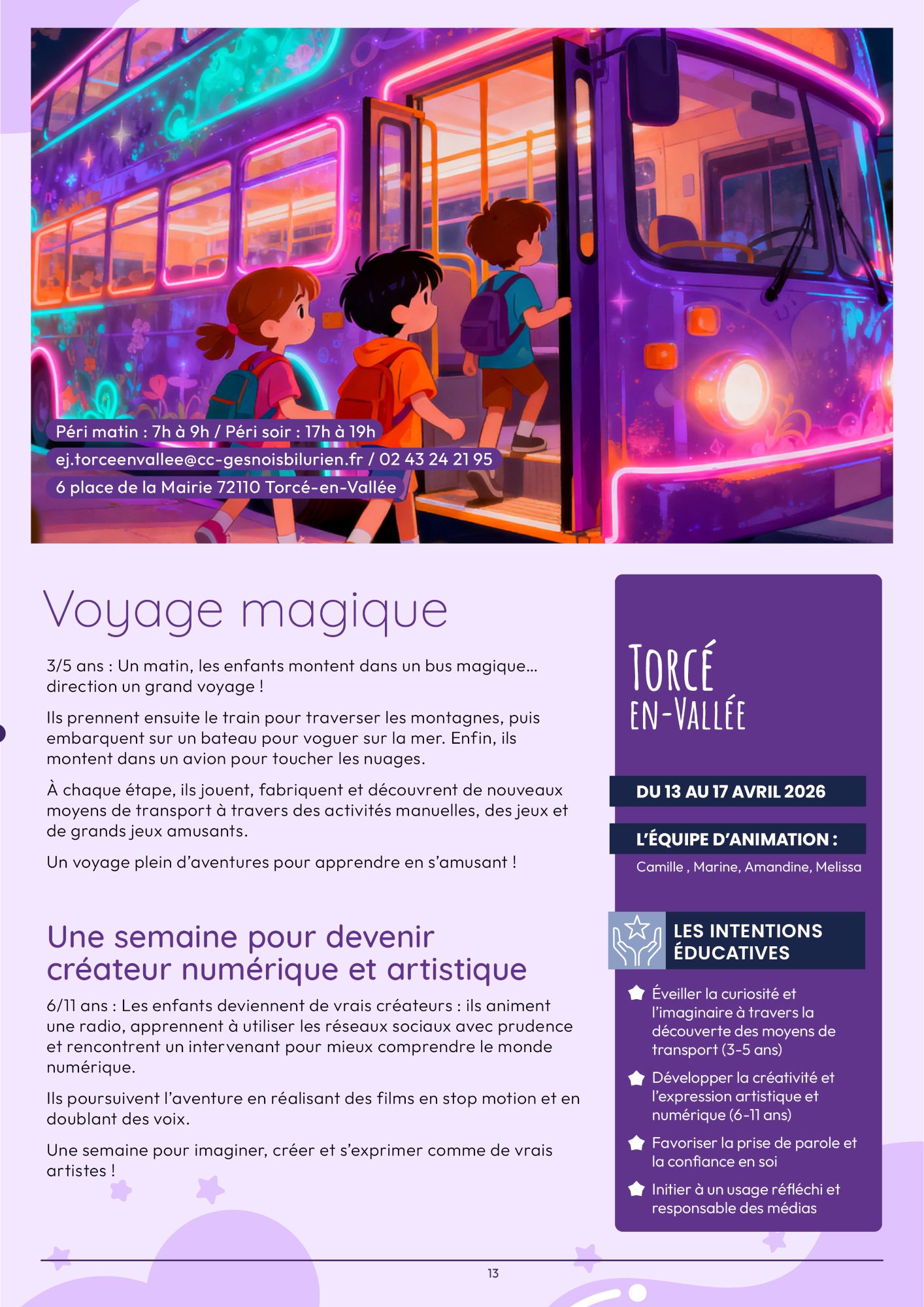 les 2 semaines : du 13 au 24 avril 2026 : Saint-Mars-la-Brière.