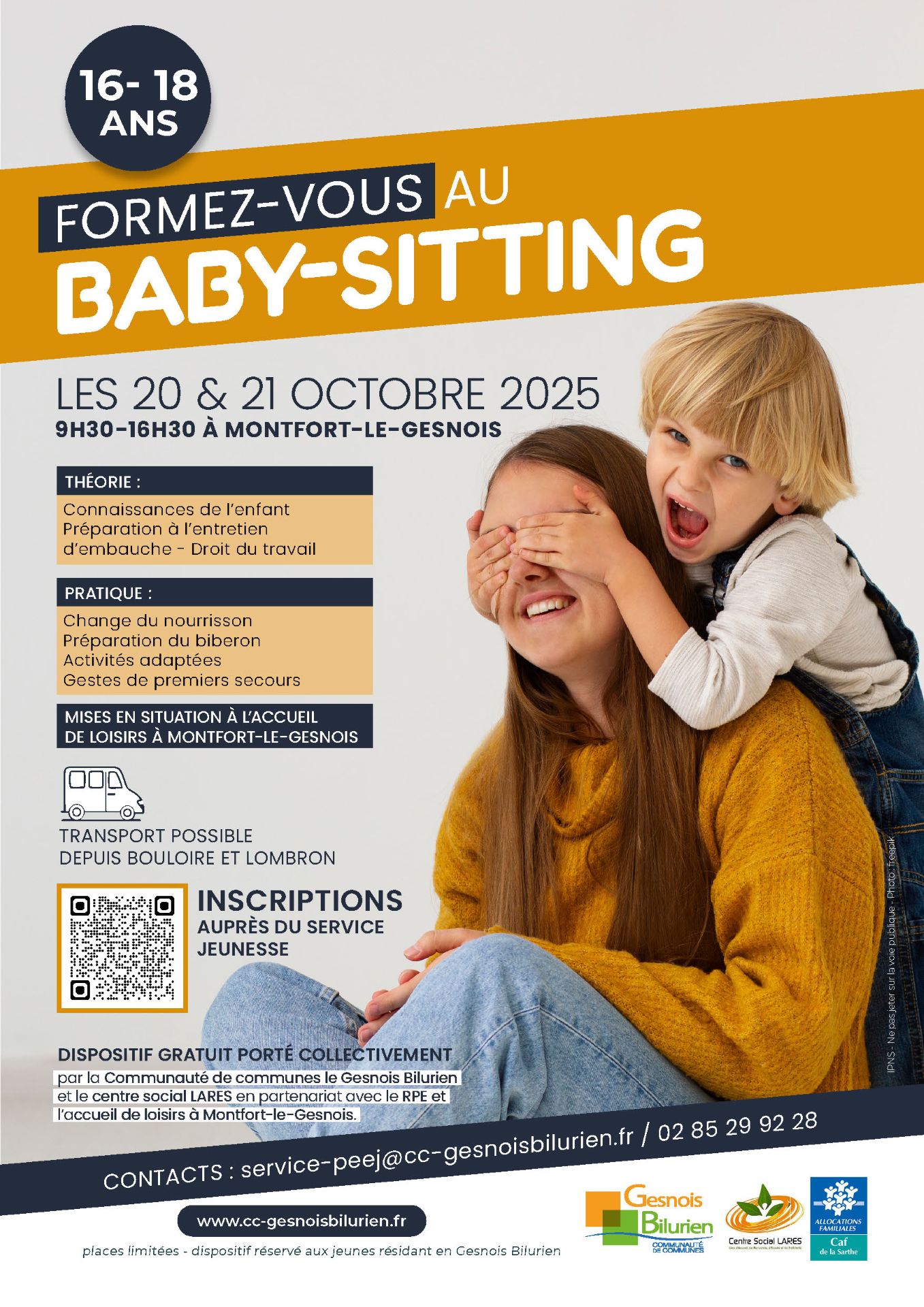 Le service jeunesse du Gesnois Bilurien et le Centre Social LARES proposent un dispositif  gratuit visant à former des jeunes au baby-sitting.
