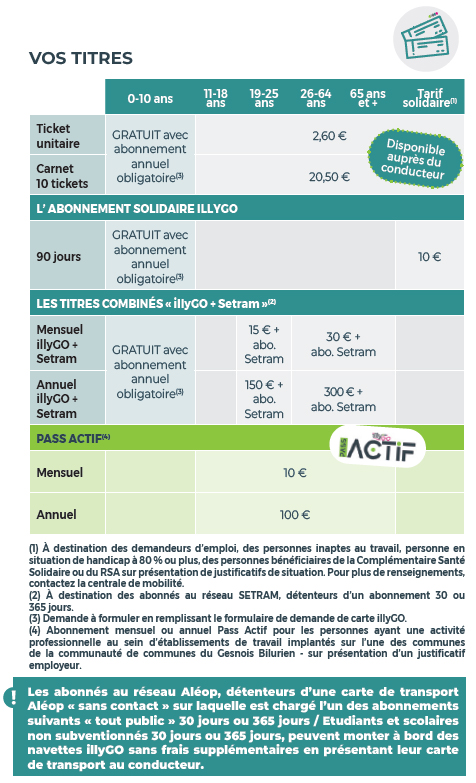 Enfin, les détenteurs d’une carte d’abonnement Aléop (hors scolaire) peuvent monter à bord des cars/navettes illyGO sans frais supplémentaires.