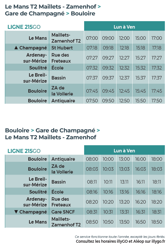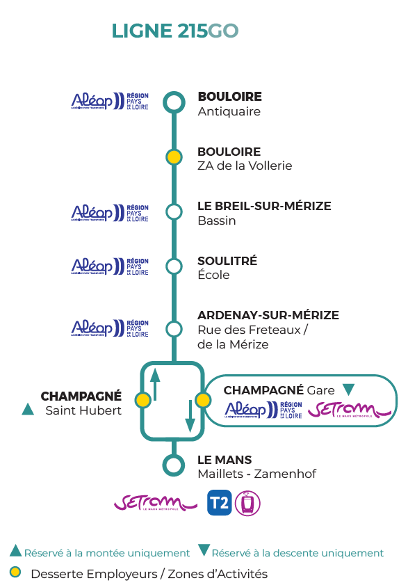 – de faciliter l’accès à la métropole du Mans via la gare de Champagné et le pôle d’échange multimodal Maillets-Zamenhof au Mans de la ligne de tramway T2 de la SETRAM,